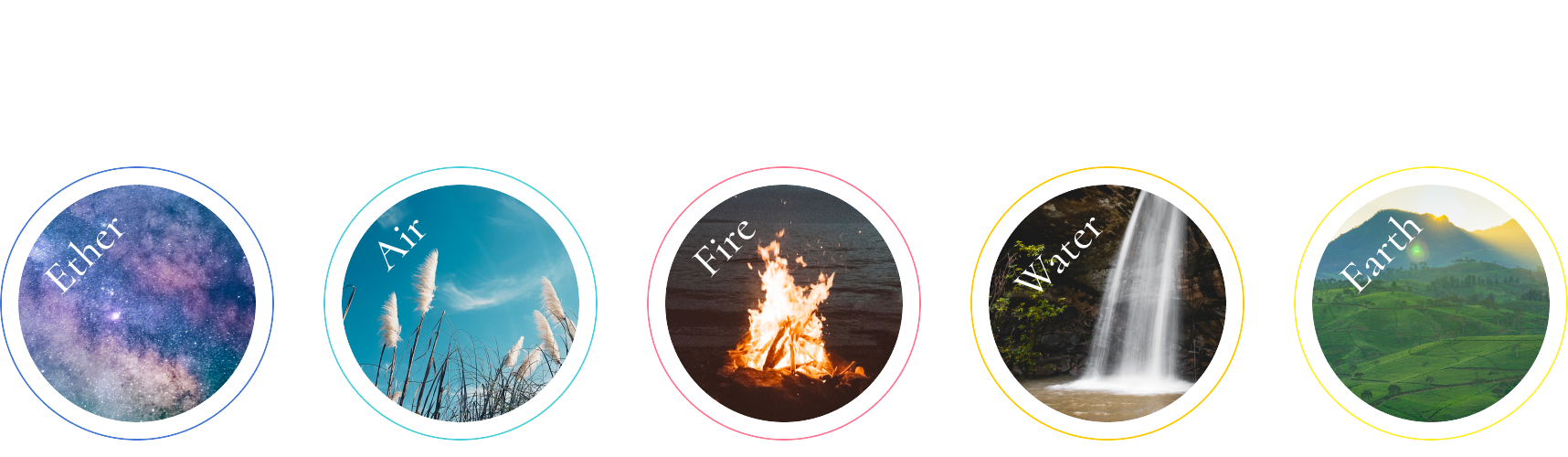 Our retreats are centred around the Universal Elements and Energy, where each element represents a season, emotion, and energy. The five elements - Ether, Air, Fire, Water, and Earth - are interconnected and found within both the Earth and ourselves.